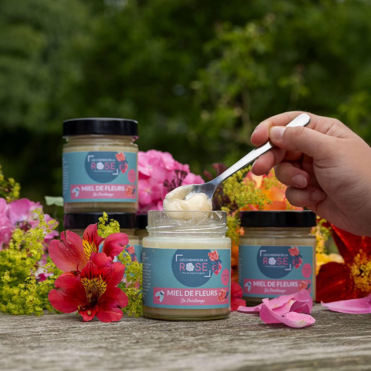 Un miel de printemps français, pur et naturel, récolté artisanalement aux Chemins de la Rose, à Doué-la-Fontaine. Riche en saveurs florales douces et en énergie naturelle.